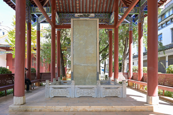 下午的活動聚焦“廉潔自律”與“發展賦能”兩大核心,推動黨性教育走深走實。隊伍首先前往石林縣武廟內的“雙碑”廉潔文化園。在《去思碑》與《遺臭碑》前,講解員詳細介紹了兩碑的歷史背景:《去思碑》記錄清末路南知州陳先溶勤政愛民的功績,是百姓愛戴的見證;《遺臭碑》則揭露1943年貪官許良安的劣跡,成為警示后人的“反面教材”。